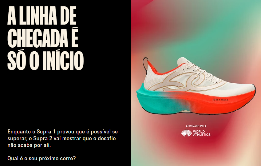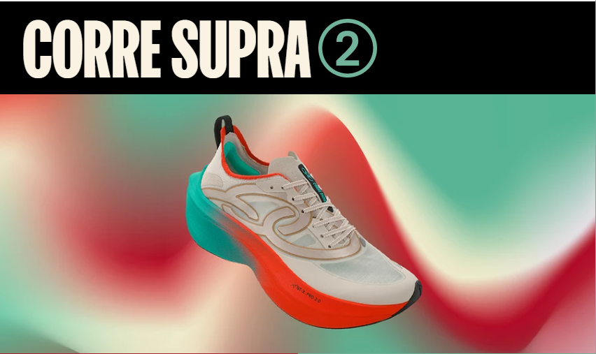 Entressola superior em PEBA expandido com Nitrogênio (SFC), garantindo nível máximo de amortecimento, além de alta resiliência, baixa deformação e extrema leveza.